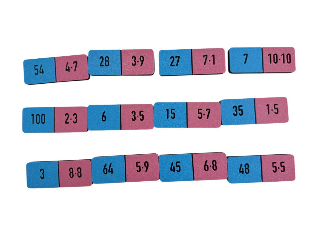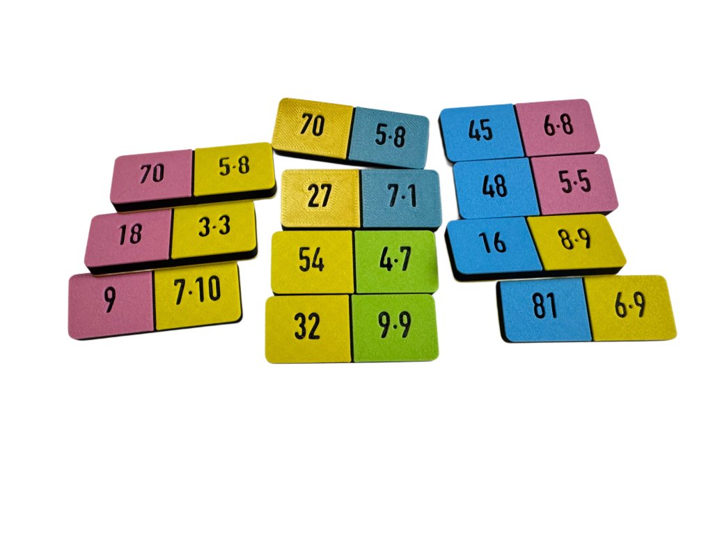 44 kostiček domina na procvičování malé násobilky ve stohovatelné krabičce